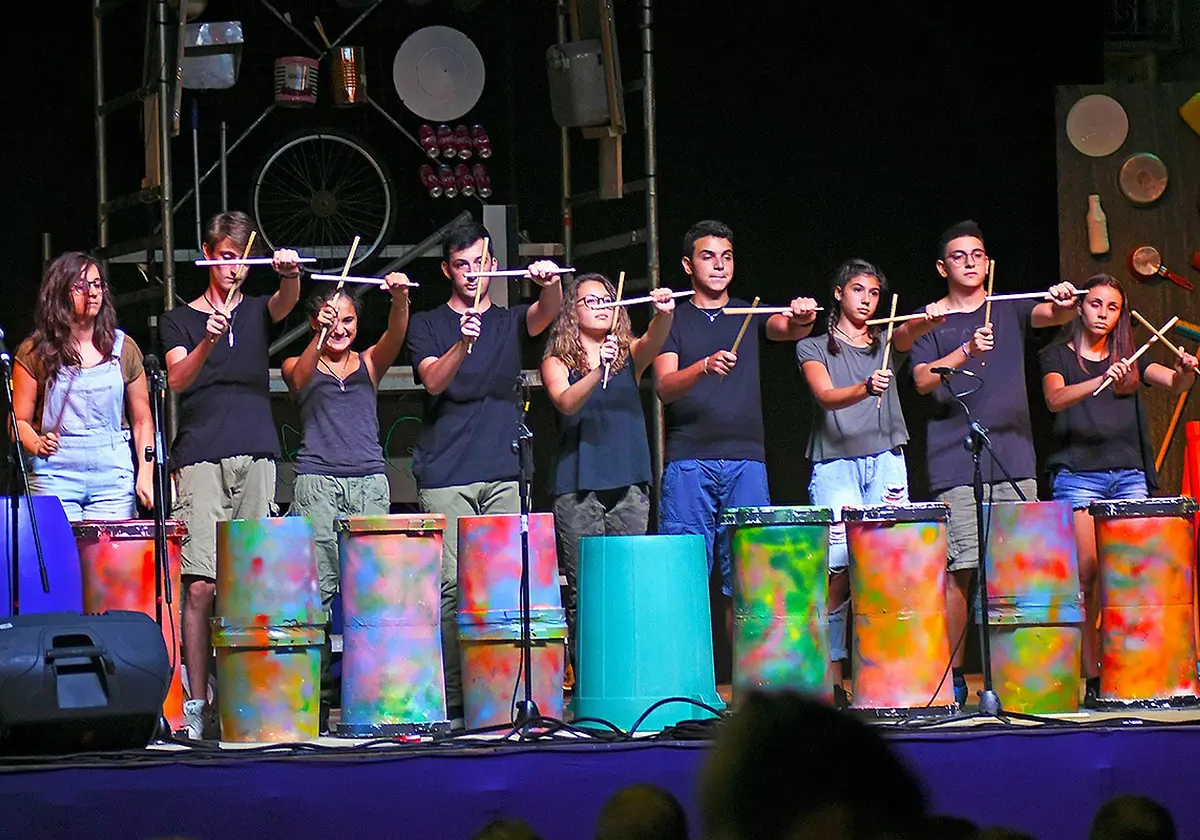 An experimental workshop of body percussion and self-built instruments from recycled materials. A permanent performance group that tours between Capri and the mainland with shows made entirely from everyday objects.