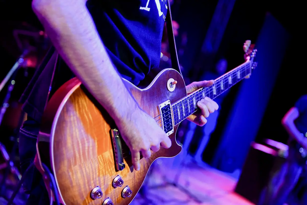 Acoustic and electric: at Kaos you learn guitar by playing. The journey starts from the basics — chords, rhythm, reading — and reaches improvisation.