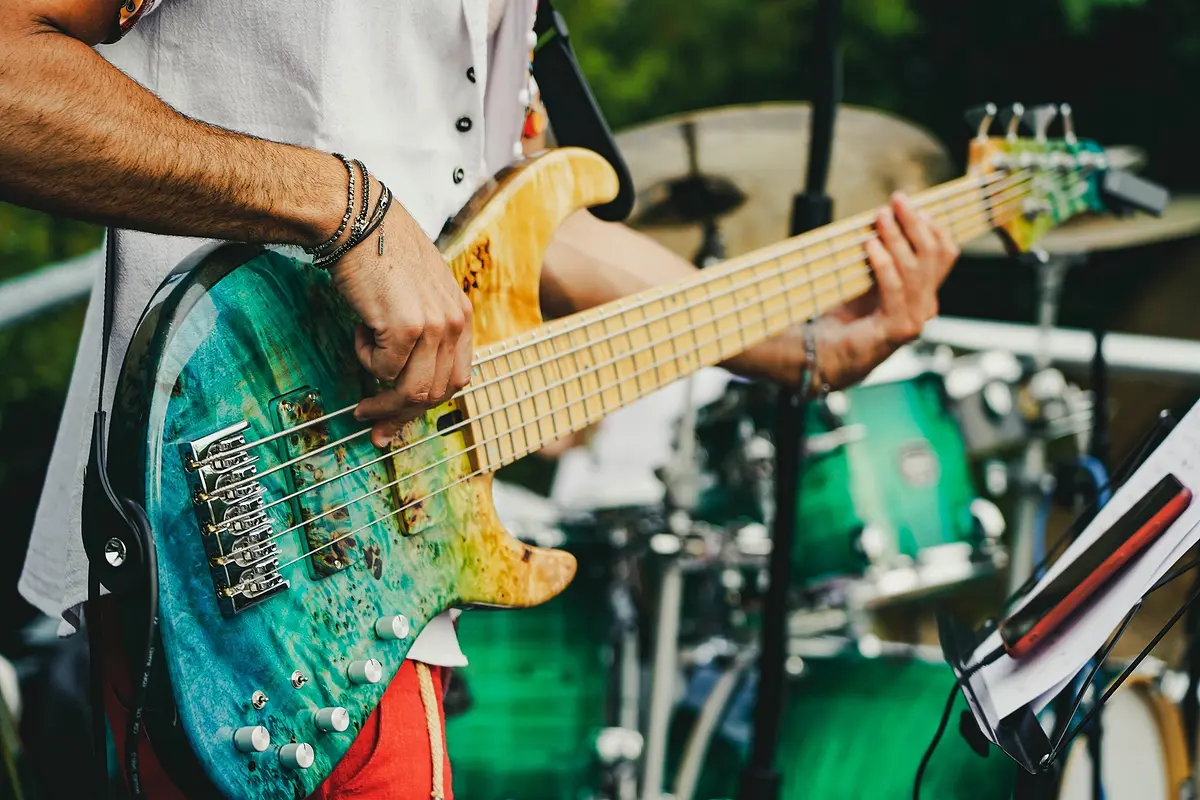 The bass is the bridge between rhythm and harmony. At Kaos you learn to build lines that support the band, exploring finger style, slap and different musical genres.